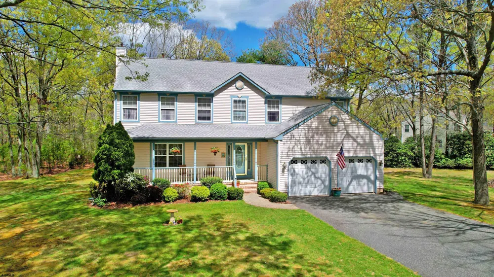 MEMORIES ON MAHOGANY! Make wonderful memories in this meticulously maintained 2 story Colonial with covered porch. Within walking distance to Historic Smithville, just off Smith Bowen Rd. This home is spacious at approximately 3,000 sq ft on 2 partially wooded acres, located on a quiet Cul-de-Sac street; excellent for walking and safe playing. Features a 2 story foyer, formal living and dining rooms perfect for entertaining family and friends, ample sized kitchen with island and granite counter tops and plenty of storage space for the cook, bay window overlooking the deck and naturally landscaped back yard, so peaceful and serene, sunken family room with gas fireplace, computer nook and powder room. Venture upstairs to 4 spacious bedrooms with lots of closet space, 2 full baths and laundry/utility room. Large Master Suite with cathedral ceiling, WIC, and full private bath w/vaulted ceiling and skylights...let the sunshine in! Then there's the attached 2 car garage, paved driveway with plenty of room for your cars and boat, also features a heated, finished basement - perfect for entertaining, gaming or create the perfect man/she cave, basement storage area, Trane furnace and Rheem H/W heater. Spend breezy summer nights on the back deck or relax with some friends around the fire pit. Yard features a 6-zone sprinkler system, roof replaced in 2018. There's also a backyard basketball court/street hockey pad! N/S Parkway access, mins to Stockton university, healthcare center, casinos, beaches, shopping and restaurants. https://my.matterport.com/show/?m=FUacWUEDDTC